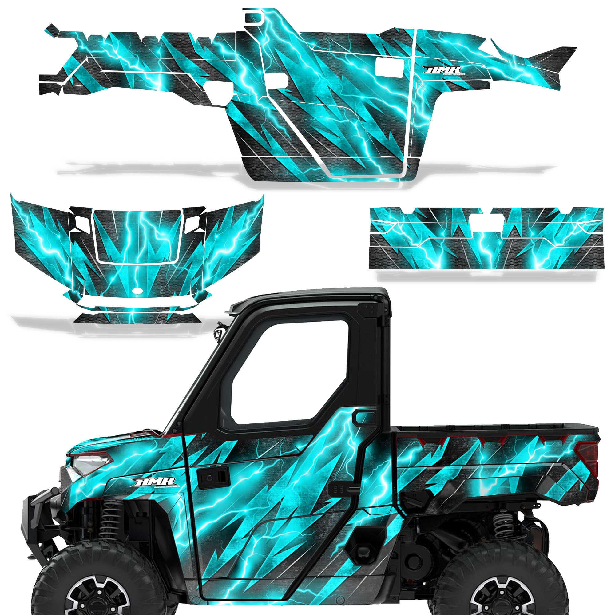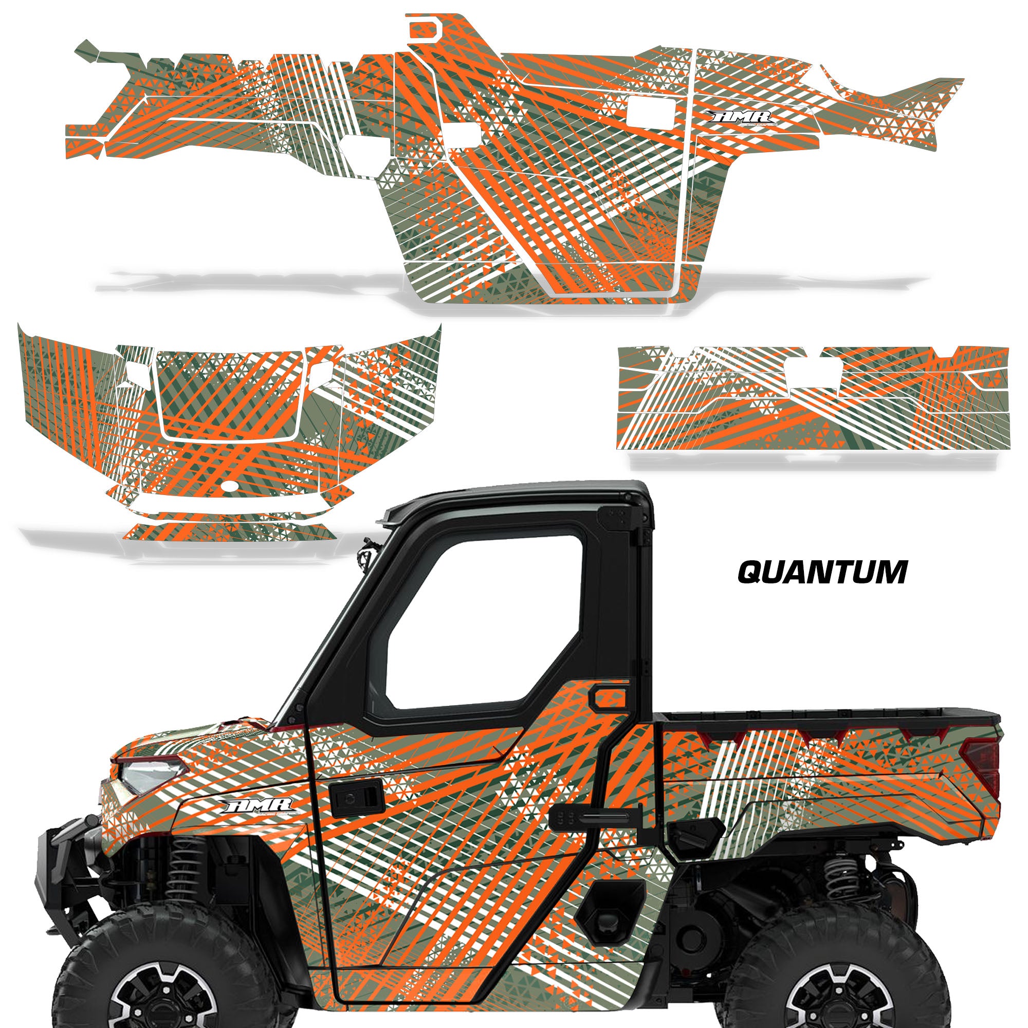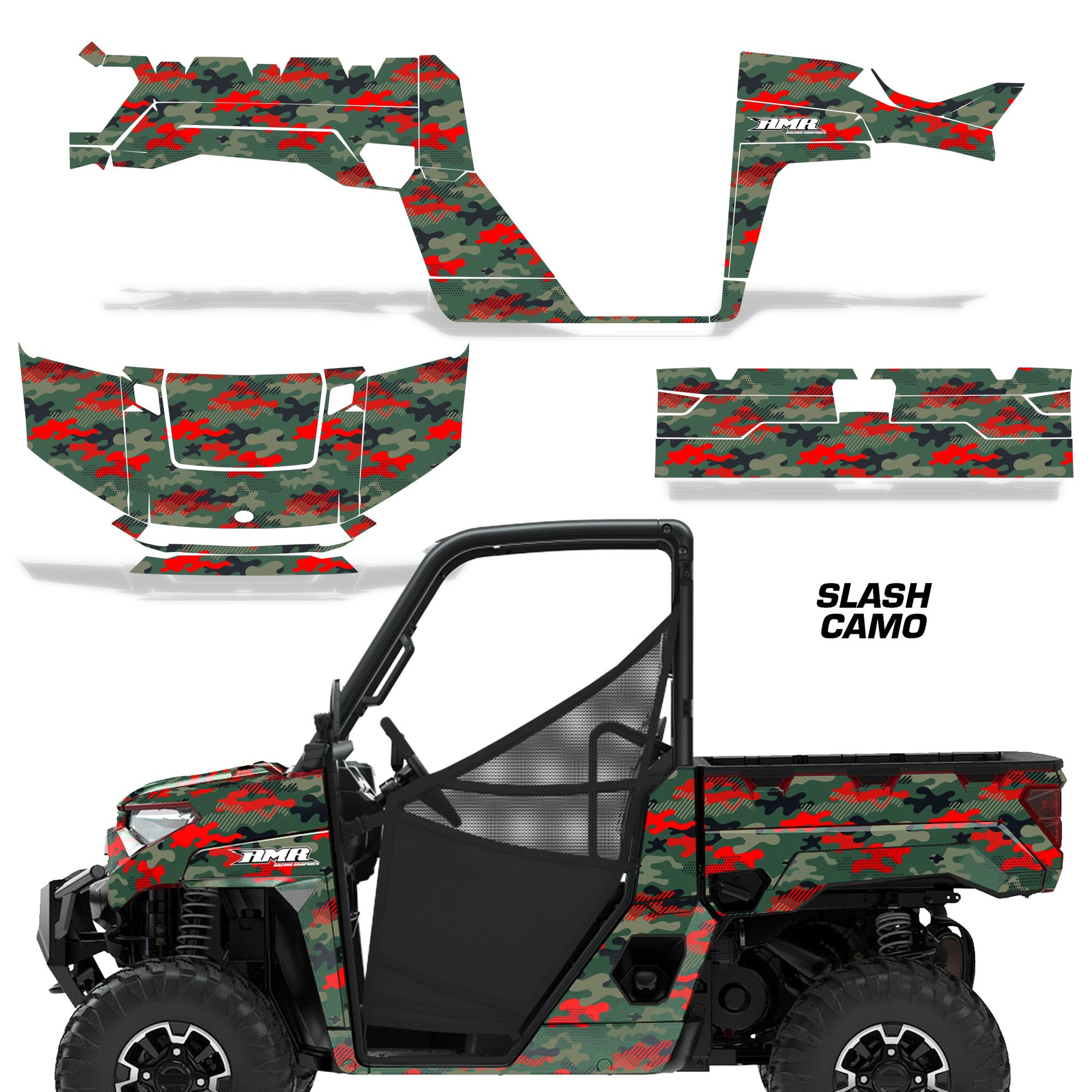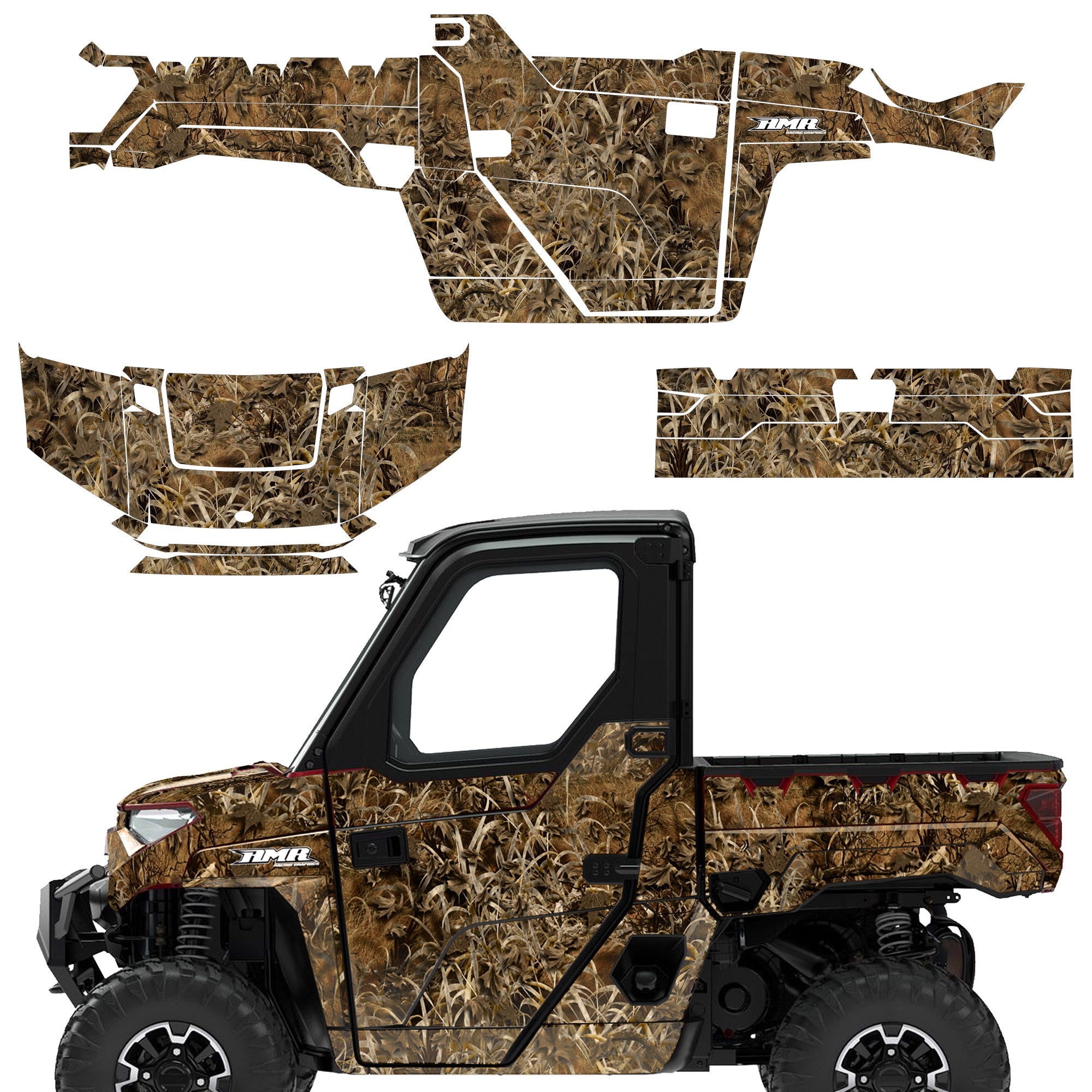 Polaris Ranger XP Premium Graphics are produced to order and may take up to 5 business days to manufacture. All graphics are digitally printed with UV resistant inks that are guaranteed not to fade up to 5 years. These are not your typical 3-4 color Silk-Screened graphics. Our digital technology produces extremely Vivid and detailed images, up to 16.5 million colors! We use the thickest layer of scratch-proof clear vinyl over laminate for an Armor Like layer of protection. Our adhesive assures your graphics won't be peeling off unless you want them to. All of our designs are available on all the models we carry. See close up images of each design on the grid below. You can also visit our Media Gallery to see how our graphics look on our customers' rides. Please Note that some of our designs have both Design Color and Background Color options. If you have any trouble ordering from the website, you may call us @ 702-312-2217 (m-f). Thank you for shopping at Amrracing.com, home of the......."THICKEST and TOUGHEST GRAPHICS ON THE PLANET"