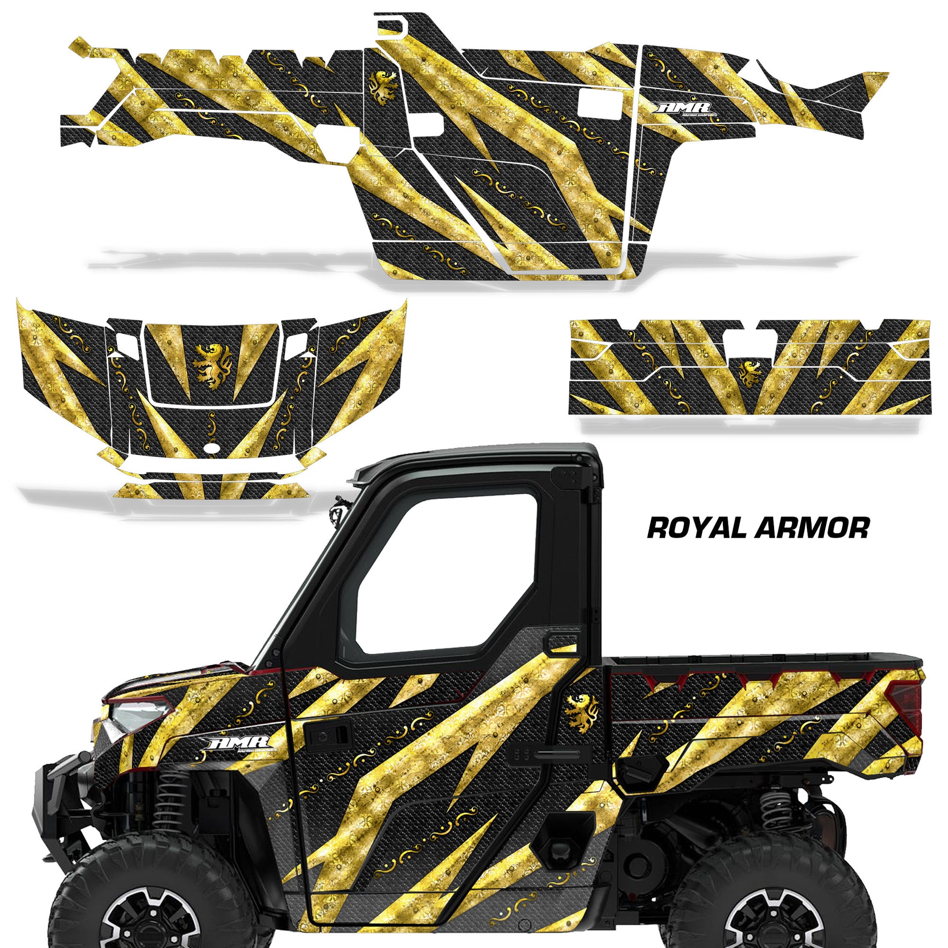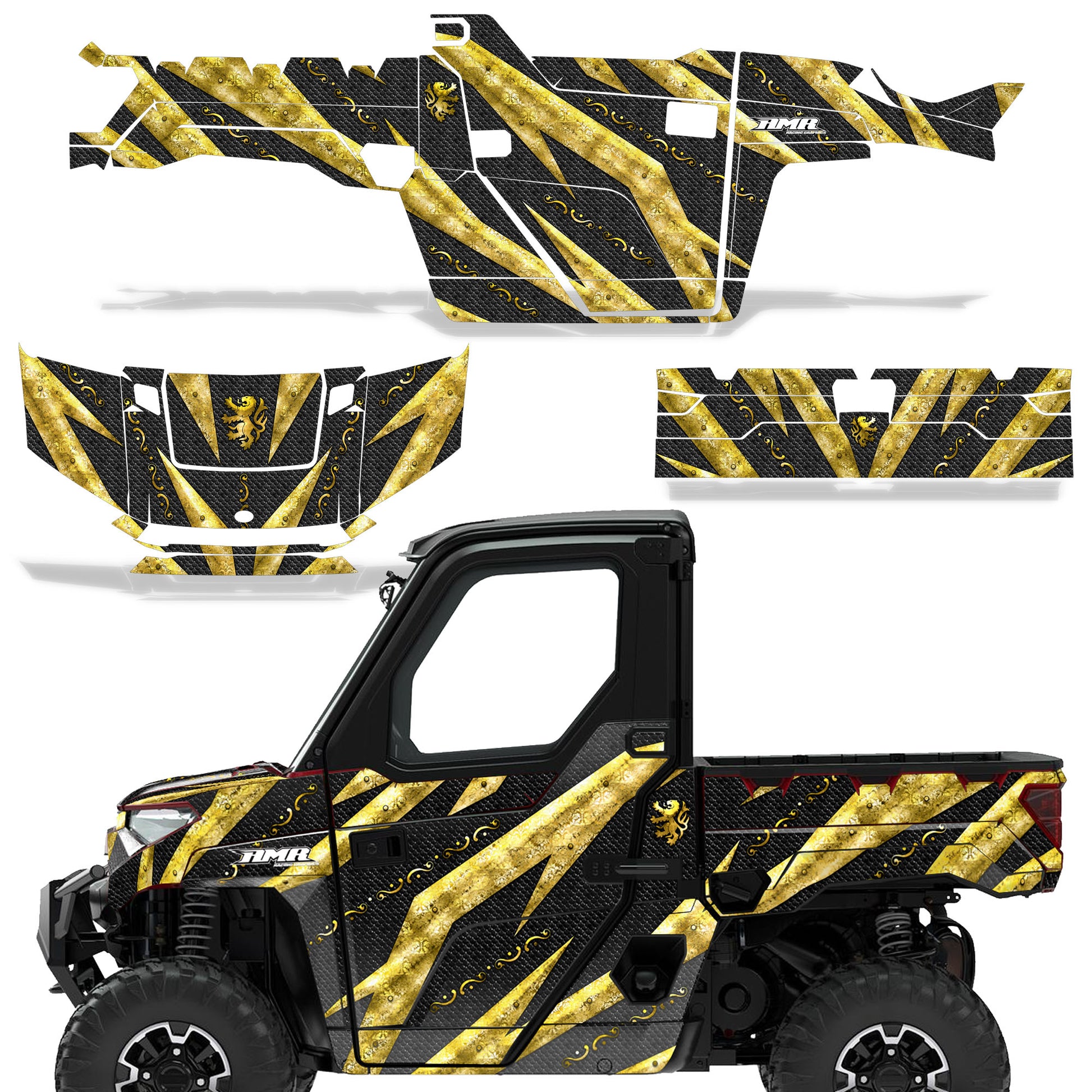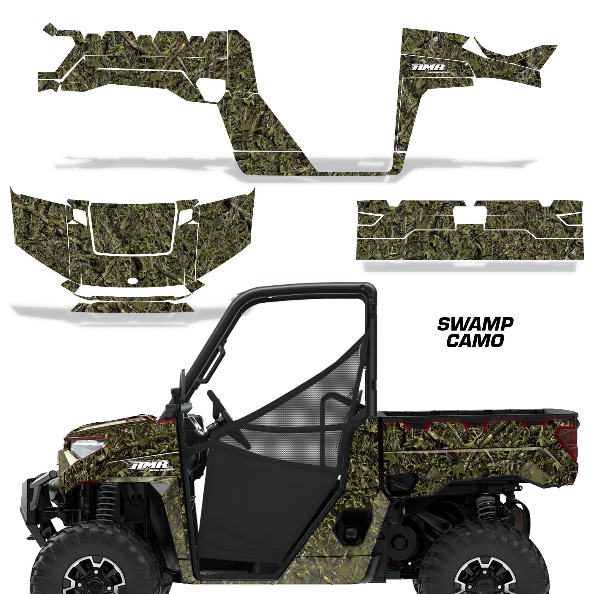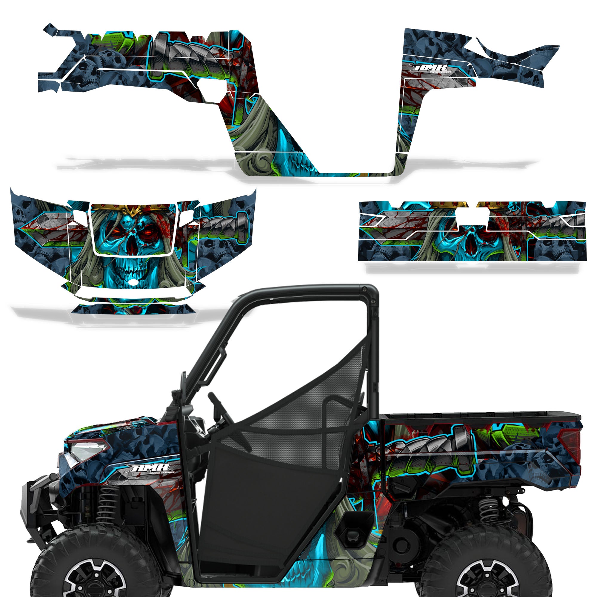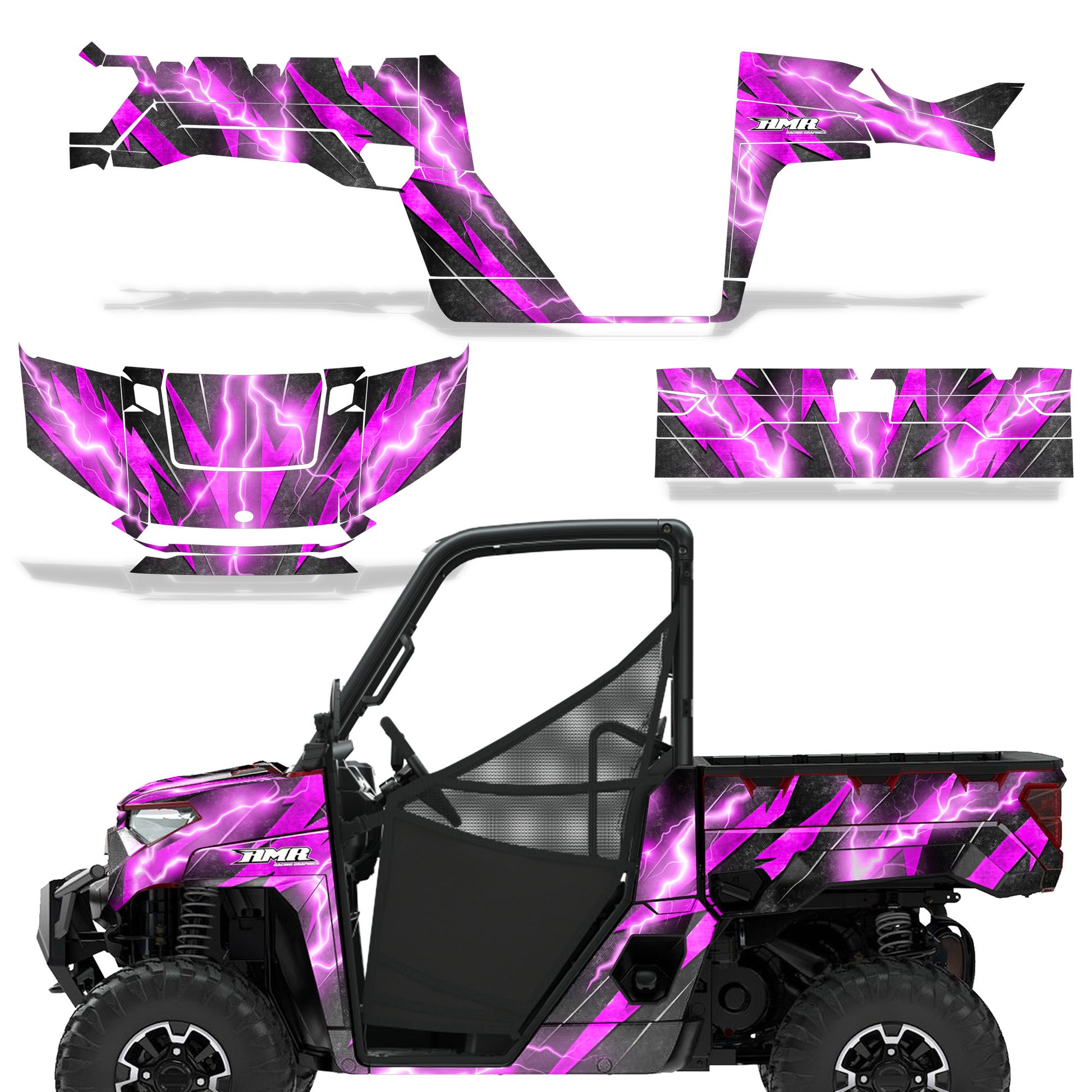 Polaris Ranger XP Premium Graphics are produced to order and may take up to 5 business days to manufacture. All graphics are digitally printed with UV resistant inks that are guaranteed not to fade up to 5 years. These are not your typical 3-4 color Silk-Screened graphics. Our digital technology produces extremely Vivid and detailed images, up to 16.5 million colors! We use the thickest layer of scratch-proof clear vinyl over laminate for an Armor Like layer of protection. Our adhesive assures your graphics won't be peeling off unless you want them to. All of our designs are available on all the models we carry. See close up images of each design on the grid below. You can also visit our Media Gallery to see how our graphics look on our customers' rides. Please Note that some of our designs have both Design Color and Background Color options. If you have any trouble ordering from the website, you may call us @ 702-312-2217 (m-f). Thank you for shopping at Amrracing.com, home of the......."THICKEST and TOUGHEST GRAPHICS ON THE PLANET"