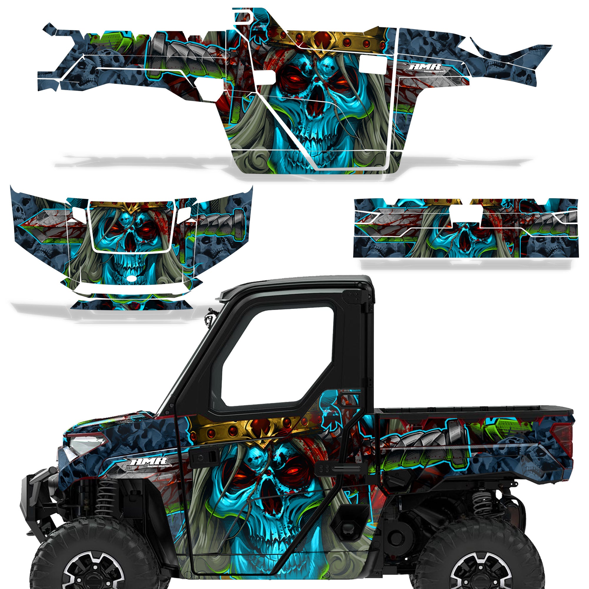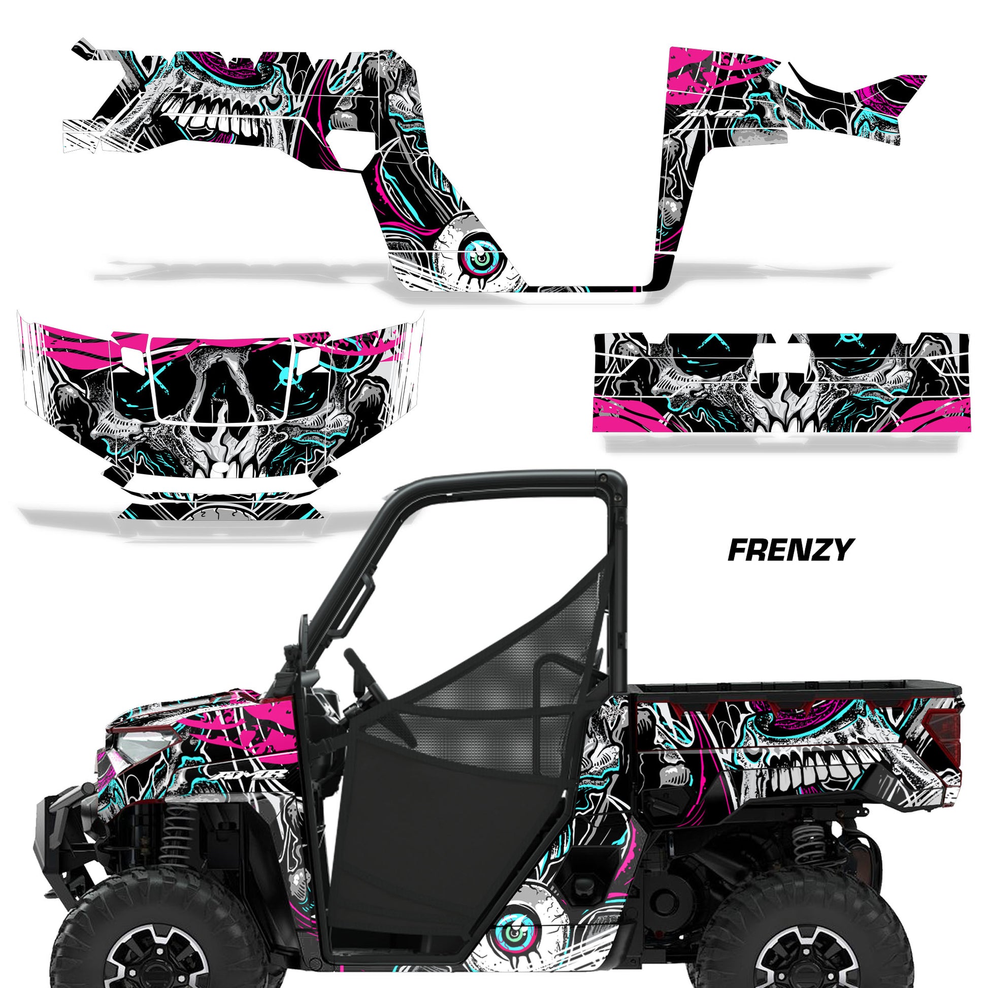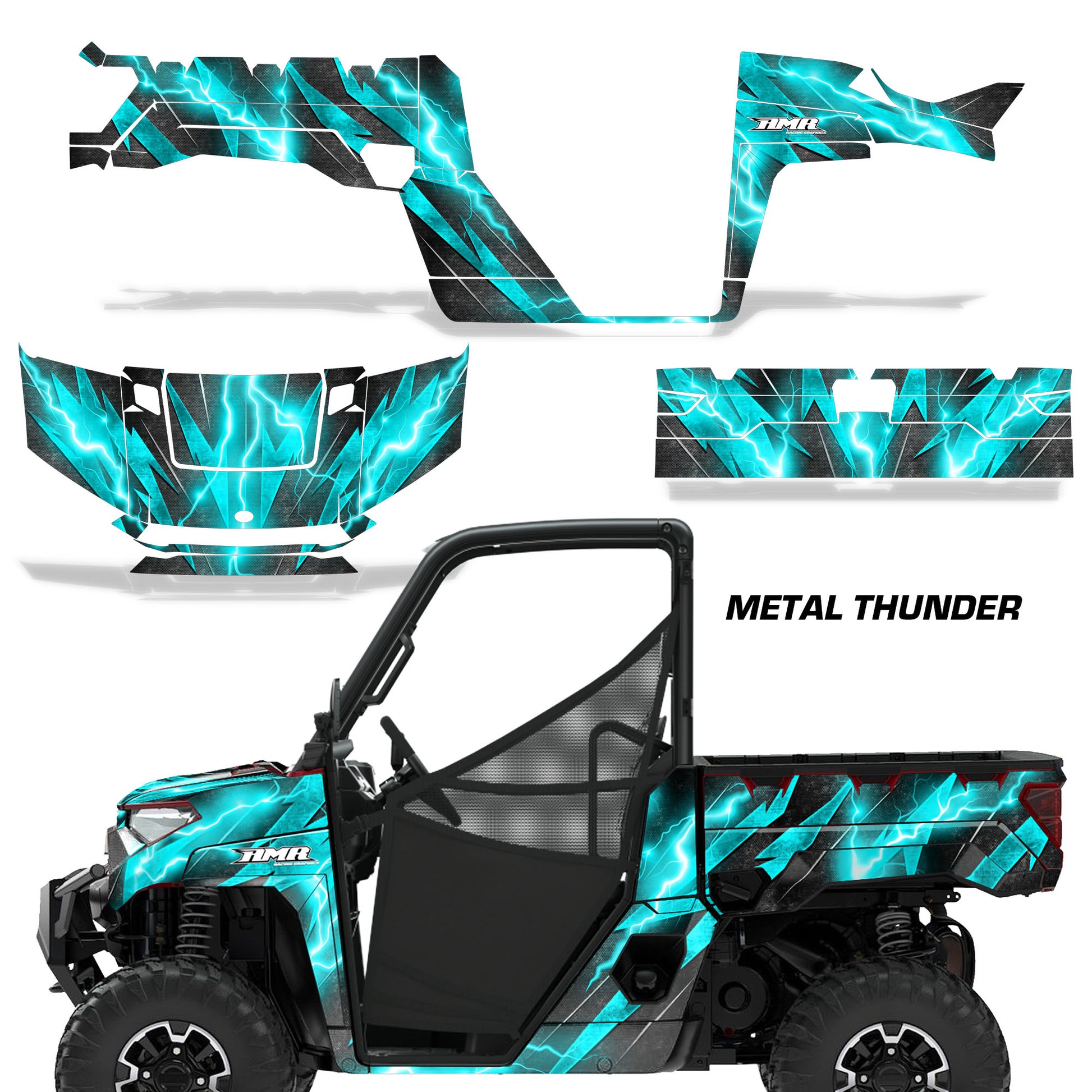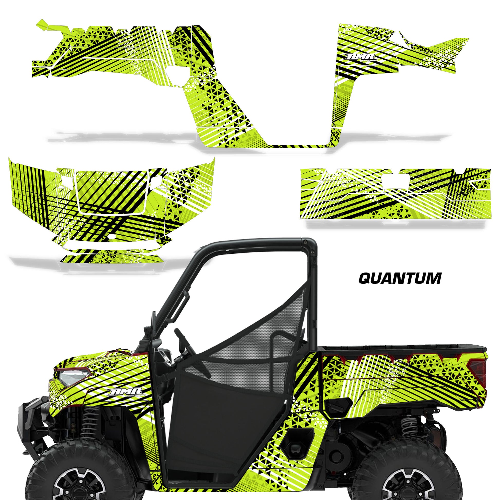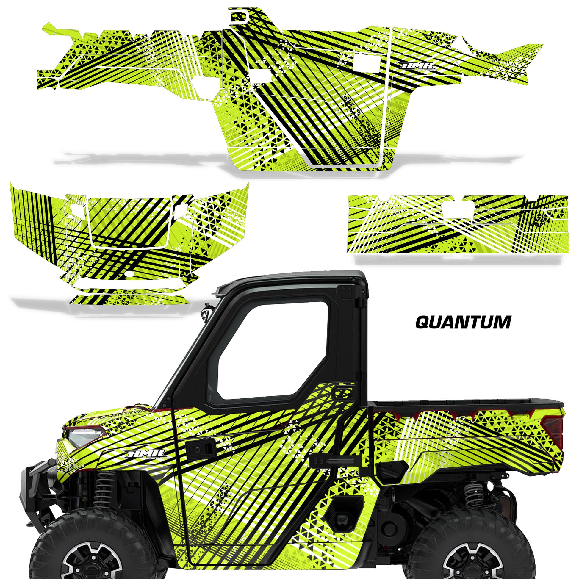 Polaris Ranger XP Premium Graphics are produced to order and may take up to 5 business days to manufacture. All graphics are digitally printed with UV resistant inks that are guaranteed not to fade up to 5 years. These are not your typical 3-4 color Silk-Screened graphics. Our digital technology produces extremely Vivid and detailed images, up to 16.5 million colors! We use the thickest layer of scratch-proof clear vinyl over laminate for an Armor Like layer of protection. Our adhesive assures your graphics won't be peeling off unless you want them to. All of our designs are available on all the models we carry. See close up images of each design on the grid below. You can also visit our Media Gallery to see how our graphics look on our customers' rides. Please Note that some of our designs have both Design Color and Background Color options. If you have any trouble ordering from the website, you may call us @ 702-312-2217 (m-f). Thank you for shopping at Amrracing.com, home of the......."THICKEST and TOUGHEST GRAPHICS ON THE PLANET"