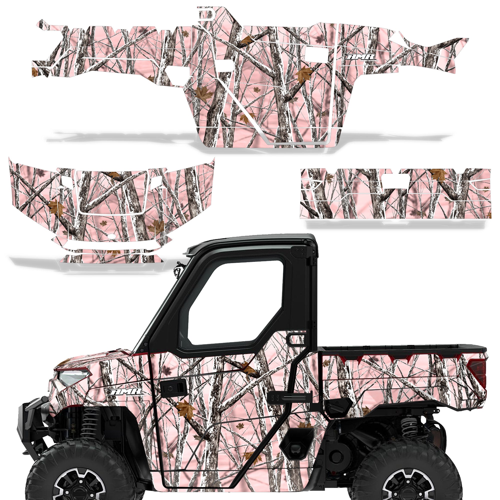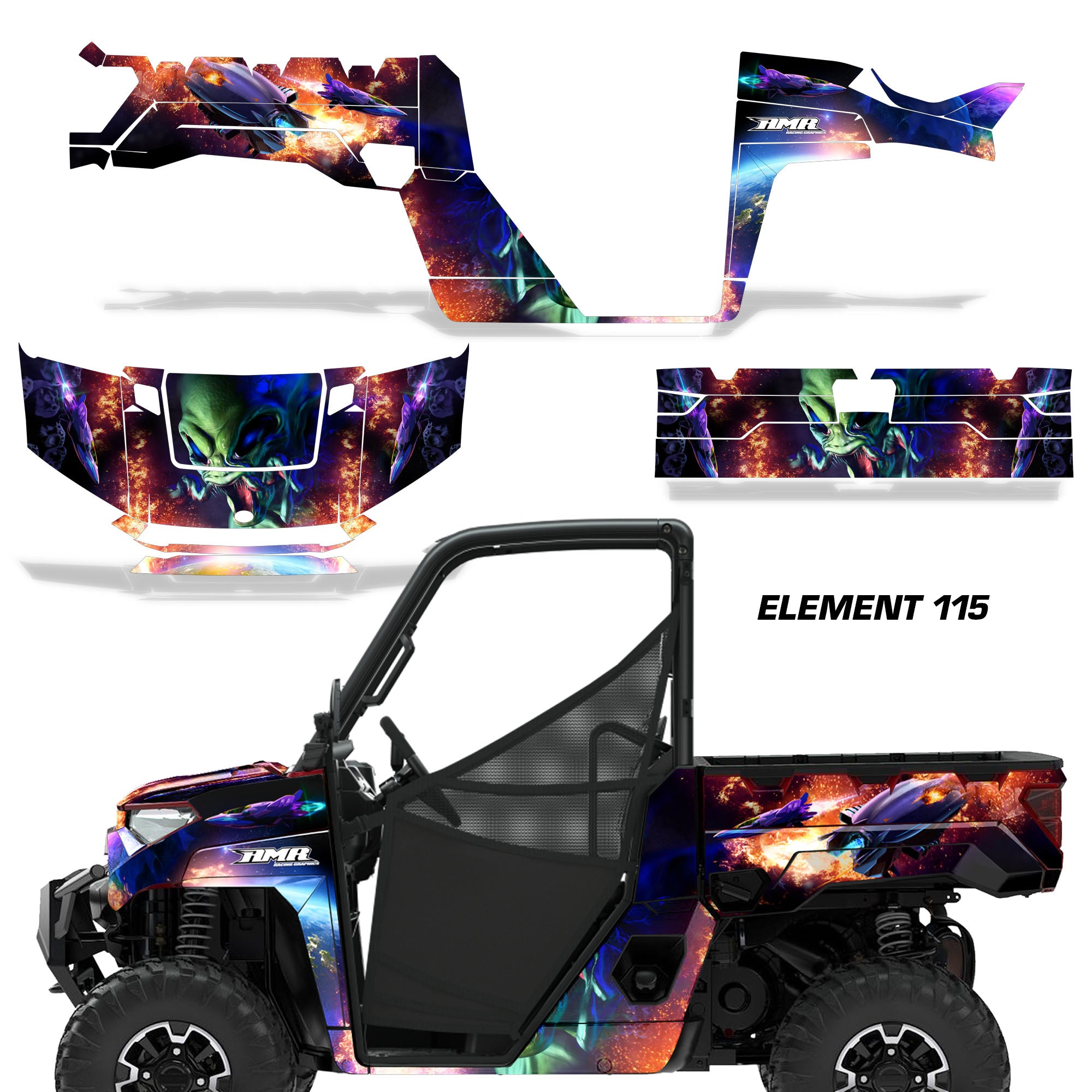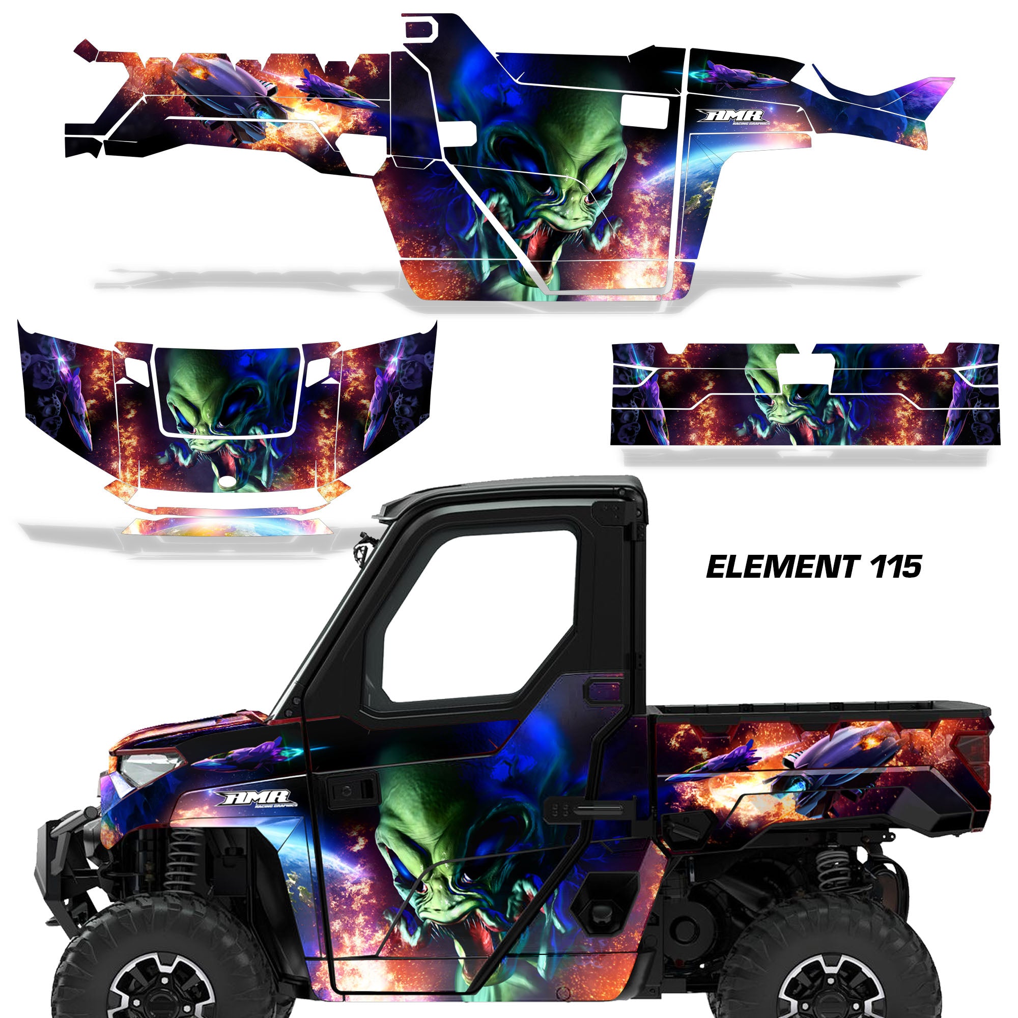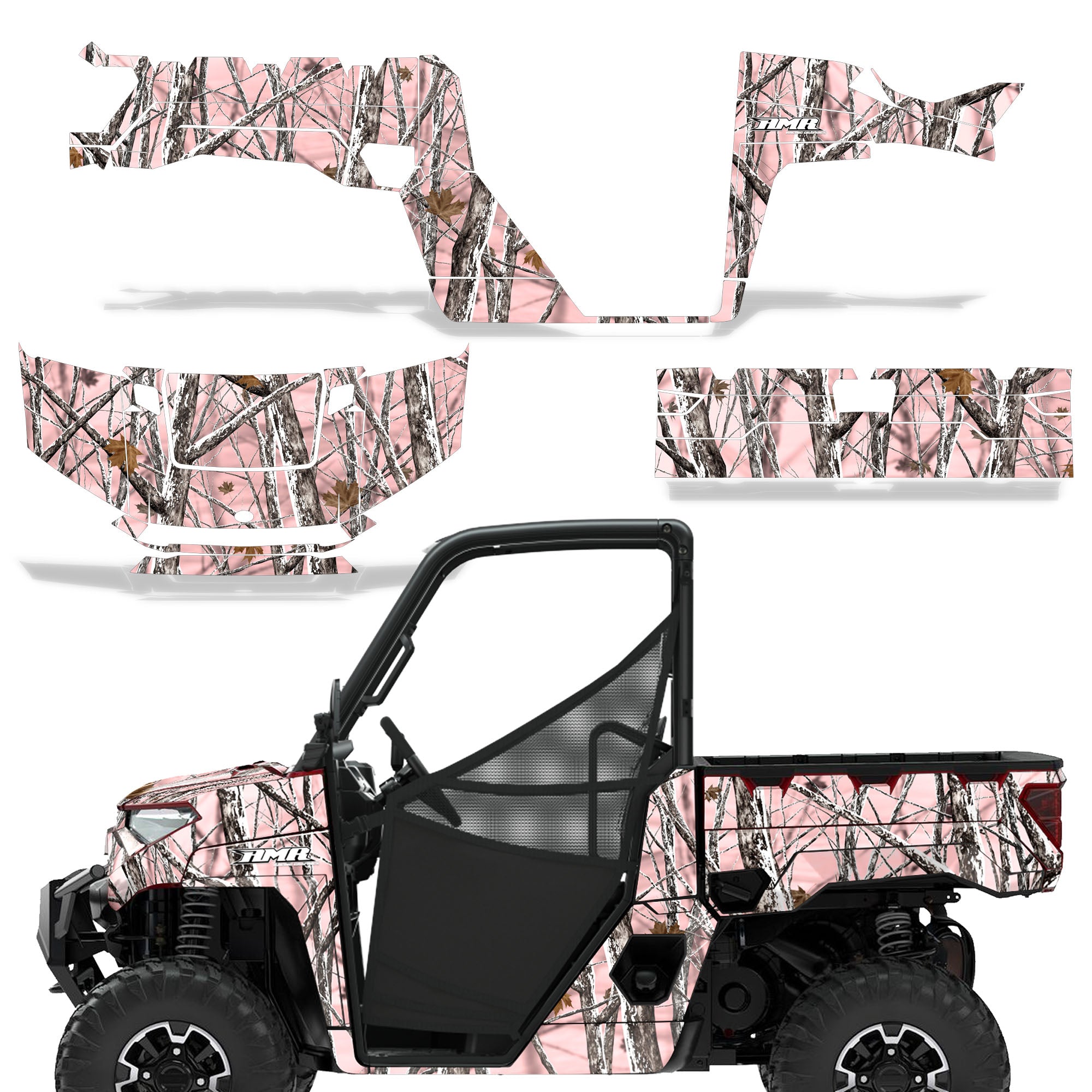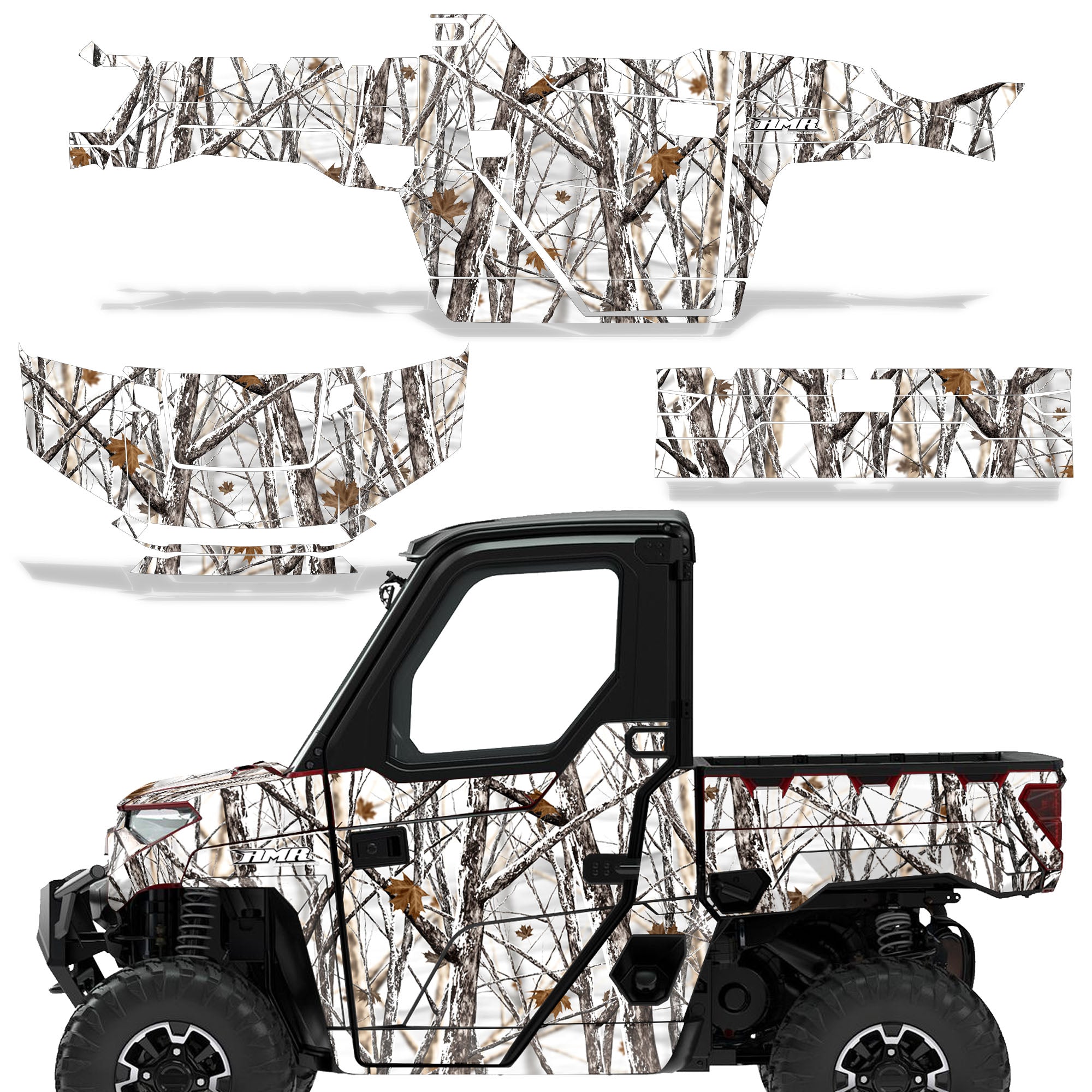 Polaris Ranger XP Premium Graphics are produced to order and may take up to 5 business days to manufacture. All graphics are digitally printed with UV resistant inks that are guaranteed not to fade up to 5 years. These are not your typical 3-4 color Silk-Screened graphics. Our digital technology produces extremely Vivid and detailed images, up to 16.5 million colors! We use the thickest layer of scratch-proof clear vinyl over laminate for an Armor Like layer of protection. Our adhesive assures your graphics won't be peeling off unless you want them to. All of our designs are available on all the models we carry. See close up images of each design on the grid below. You can also visit our Media Gallery to see how our graphics look on our customers' rides. Please Note that some of our designs have both Design Color and Background Color options. If you have any trouble ordering from the website, you may call us @ 702-312-2217 (m-f). Thank you for shopping at Amrracing.com, home of the......."THICKEST and TOUGHEST GRAPHICS ON THE PLANET"