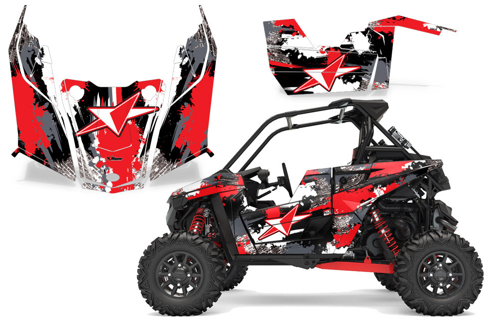 Polaris RZR RS1 Premium Graphics are produced to order and may take up to 5 business days to manufacture. All graphics are digitally printed with UV resistant inks that are guaranteed not to fade up to 5 years. These are not your typical 3-4 color Silk-Screened graphics. Our digital technology produces extremely Vivid and detailed images, up to 16.5 million colors! We use the thickest layer of scratch-proof clear vinyl over laminate for an Armor Like layer of protection. Our Genuine 3M brand adhesive assures your graphics won't be peeling off unless you want them to. All of our designs are available on all the models we carry. See close up images of each design on the grid below. You can also visit our Media Gallery to see how our graphics look on our customers' rides. Please Note that some of our designs have both Design Color and Background Color options. If you have any trouble ordering from the website, you may call us @ 702-312-2217 (m-f). Thank you for shopping at Amrracing.com, home of the......."THICKEST and TOUGHEST GRAPHICS ON THE PLANET"